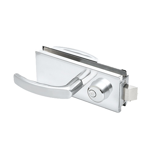 The CRL AMR900 Series Glass Mounted Latch comes assembled with Keyed Cylinder, Thumbturn, and Lever Handles.