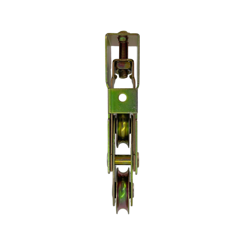 The adjustable steel housing assembly on the CRL Glass Door Roller is 3/4″ (19 mm) wide and 1″ (25 mm) high. The two steel ball bearing rollers are 1-1/8″ (29 mm) in diameter. The top mounting hole has a 1/4-20 thread. This assembly is used by several glass door manufacturers. One roller per package.