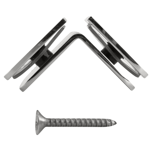 CRL Junior Traditional Style 90 Degree Glass-to-Glass Clamps are a truly versatile clamp that has two uses: As a 90 degree clamp for vertical fixed panels in glass shower enclosures; as a bracket for horizontal glass shelves within the enclosure. Clamp design allows for flush mounting of shelf to wall, or adjoining panels to meet with minimal gap.