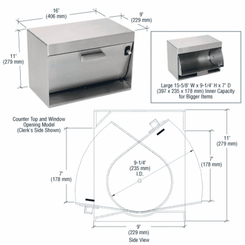 The CRL Pass-Thru Hopper is ideal for exchanging moneybags, gallon containers such as milk or anti-freeze, as well as two-liter size beverages. It’s also available with two adjustable flanges for Thru-Wall applications.