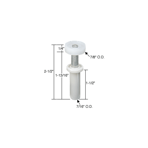 This CRL Top Pivot Guide has a 7/16″ (11 mm) diameter nylon base which is spring loaded with a 7/8″ (22 mm) diameter nylon wheel. This guide/pivot fits on bi-fold doors one to 1-3/8″ (25.4 to 35 mm) thick and up to 30 lbs. (13.6 kg) each. It fits on Cox doors. Two guides per package.