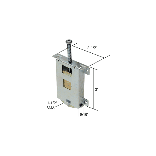 This CRL Mirror Wardrobe Roller has a 3″ (76 mm) steel housing with an adjustment screw and a 1-1/2″ (38 mm) outside diameter, concave edge, nylon ball bearing roller. The roller assembly fits on Monarch Series ‘L’ steel framed mirror doors. One roller assembly per package.
