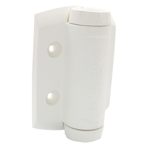 This CRL Tru-Close® Heavy-Duty Gate Hinge is a heavier-duty hinge than the TCHA1 Series. The internal stainless steel adjustable spring allows for smooth even closure under different weights, and generally meets all pool barrier codes. UV-stabilized materials are strong, self-lubricating, and weather-resistant. Available in black or white. Designed for gates weighing between 55 lbs. (25 kg) and 132 lbs. (60 kg), or if the gate is between 36″ to 48″ (914 mm to 1.22 m) wide. Contact DK Hardware Sales if the gate exceeds 132 lbs. (60 kg) or 48″ (1.22 m) in width. Installation screws sold separately.
