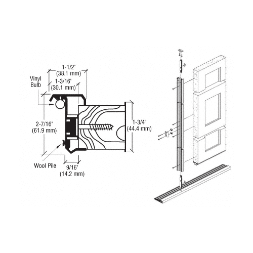 This CRL Combination Astragal and Flush Bolt Assembly is installed on the inactive leaf of a pair of 1-3/4″ (44.4 mm) thick doors. The top and bottom flush bolts, with 1″ (25.4 mm) throw, offer secure locking, and the Astragal helps prevent attempts to “jimmy” the lock. The assembly also includes the dual-seal of a vinyl bulb and wool pile weatherstrip to provide moisture and wind protection. A strike is supplied, or you may use the strike supplied with your lockset. It comes complete with detailed installation instructions and all necessary hardware.
